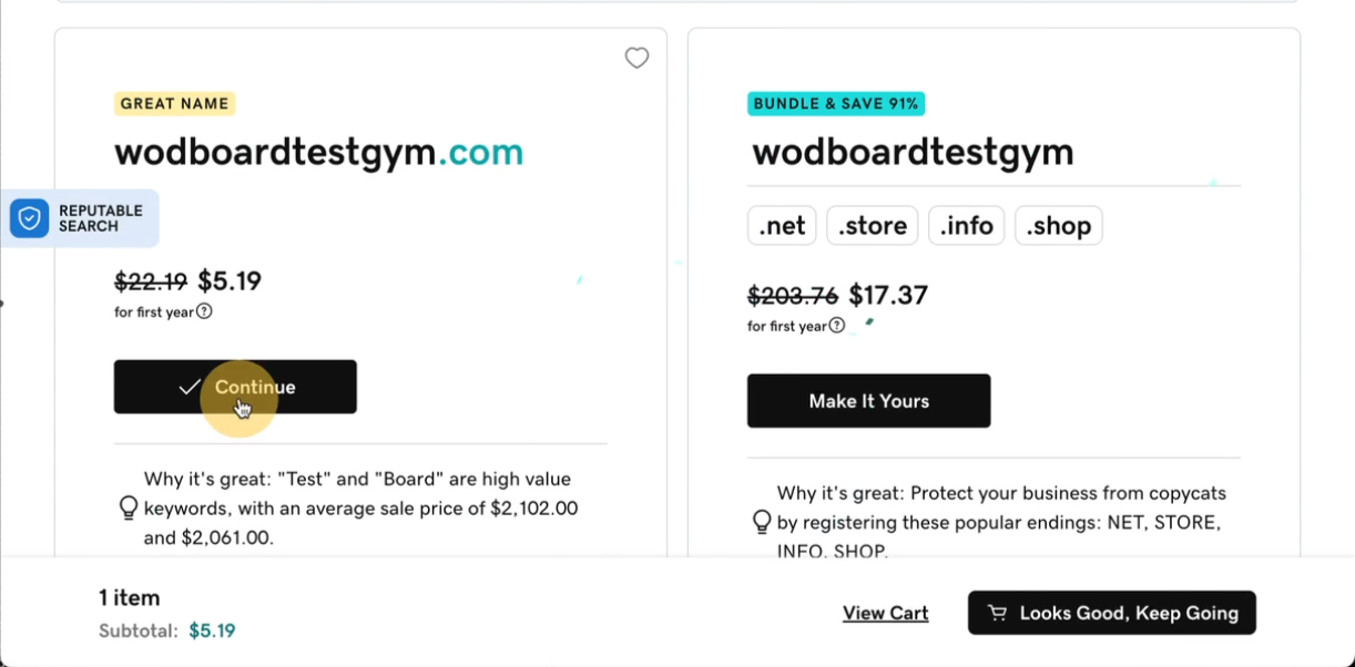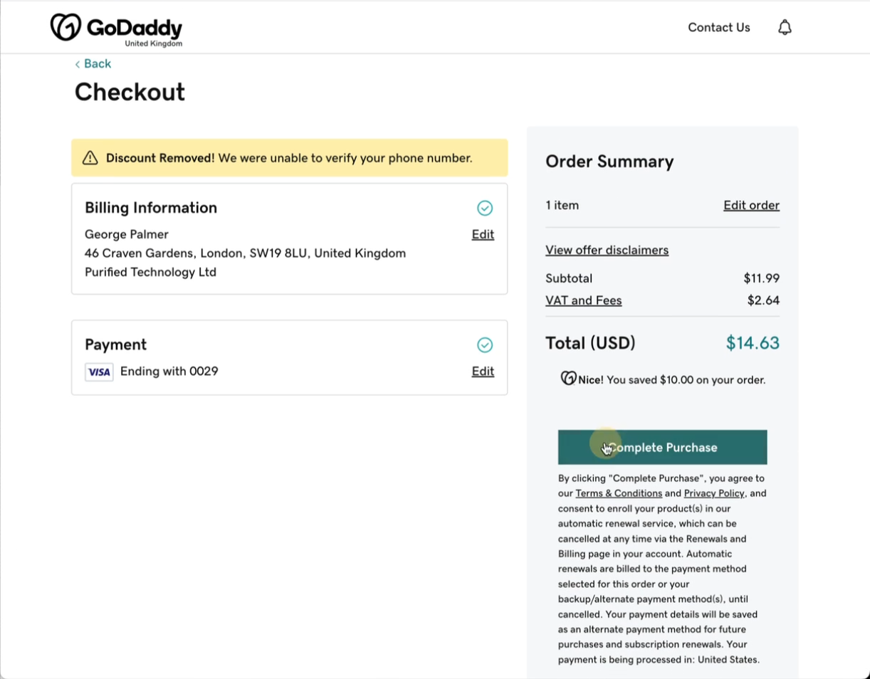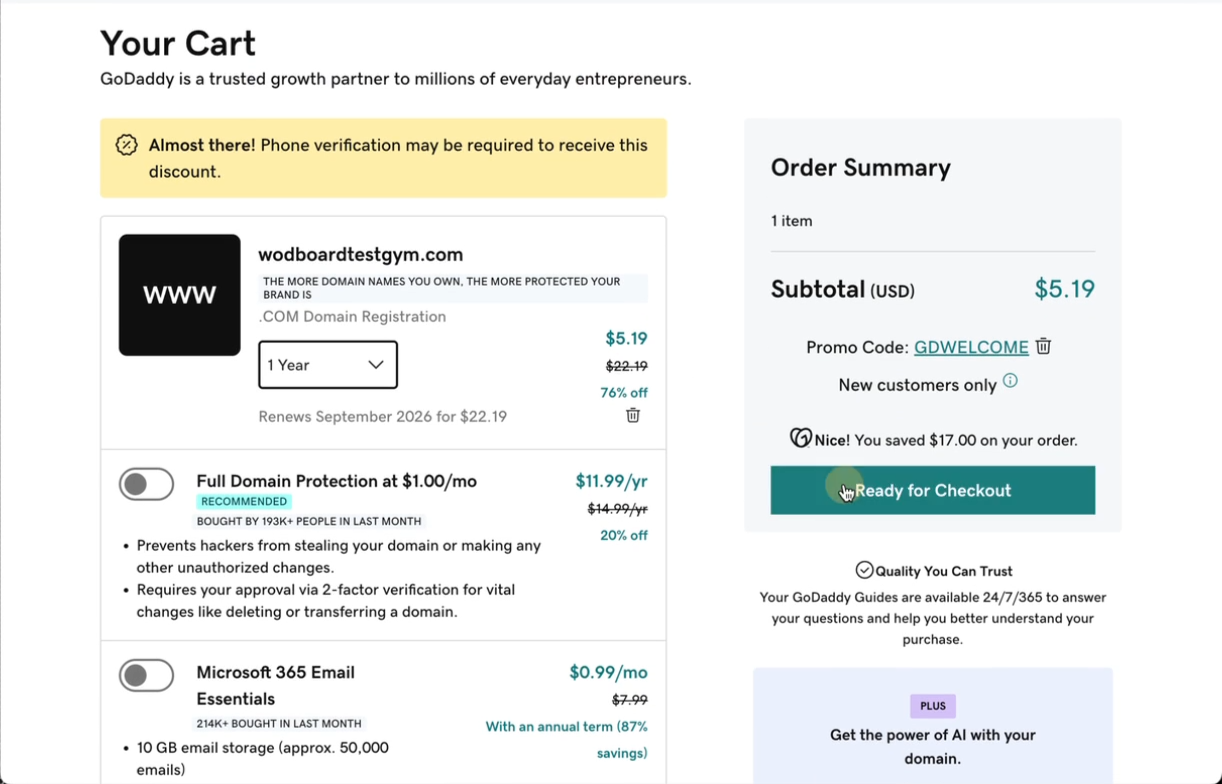 Review your selection and consider removing any add-ons (privacy, website builder, etc.) if you don’t need them.