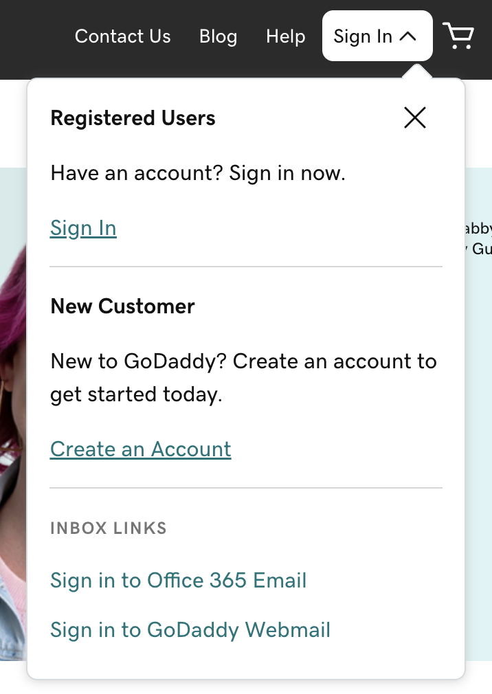 If you already have a GoDaddy account, click Sign In at the top right and log in.